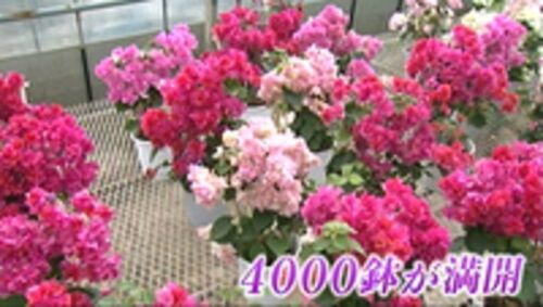 玉名市のビニールハウスで今、南国の花ブーゲンビリアが満開となっている。 花き農家の山下晴義さんは20年ほど前から10aのハウスでブーゲンビリアを栽培。 元々は中南米原産の熱帯の花だが、約4000鉢が満開。 中には山下さん自身が開発した品種で、…