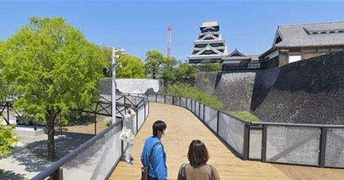 特別見学通路、熊本城に新たな視点 新型コロナで一般公開延期 2020/4/30 08:00 (JST)4/30 09:54 (JST)updated ©株式会社熊本日日新聞社天守閣の南側に設置された特別見学通路。5~7メートルの高さから復旧の様子を見ることができる=29日、熊本市中央区 …