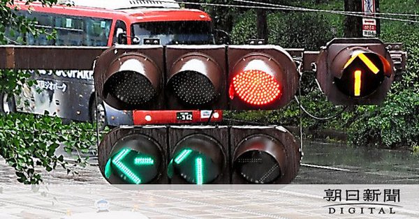 交差点の信号機には、直進や右折、左折ができることを示す青い矢印に加えて、黄色い矢印もあって、「なんだこれは」と、とまどった。
