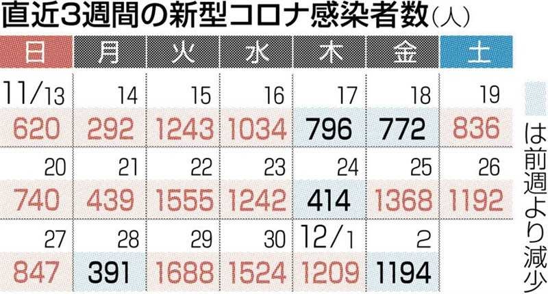 熊本県内で新たに1194人感染 新型コロナ 4日ぶり前週を下回る