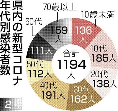 感染者の死亡はなかった。新規感染者の年代別は多い順に、40代191人、10代185人、30代162人だった。