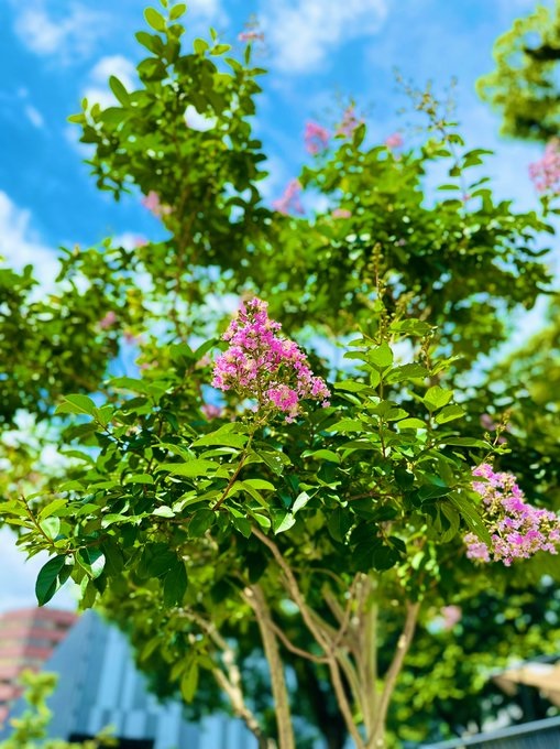 2023-06-21 花畑広場のサルスベリ 花畑広場【公式】🌿🌱💐🌱🌿@hanabatahiroba·本日も花畑広場のお花シリーズ!これはおそらくたぶんきっと『サルスベリ』さんかなと!100日くらい咲き続けるから百日紅(さるすべり変換で一発でしたすごい👍)だそうです。今週も1週間が始まりましたね、ぼちぼちやっていきまっしょーいわっしょーい