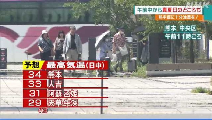 最高気温30度以上の真夏日に 玉名市は34度 熱中症に注意
