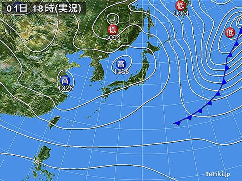 1日は、気圧の谷や寒気の影響により曇りとなる所もありますが、高気圧に覆われておおむね晴れとなるでしょう。