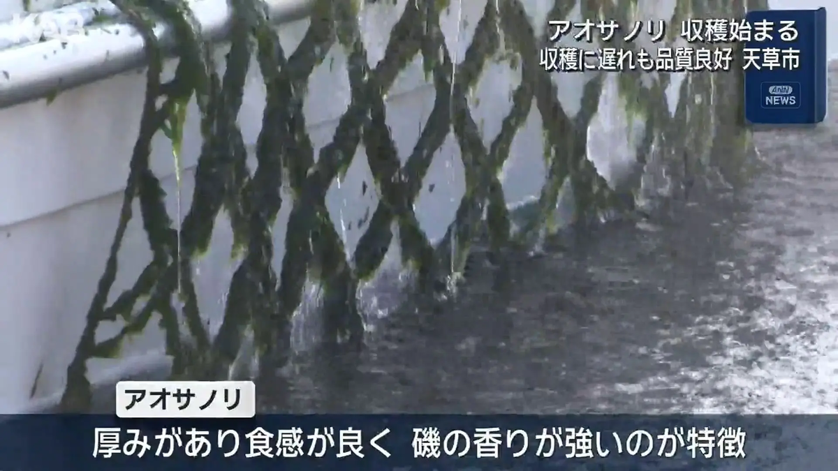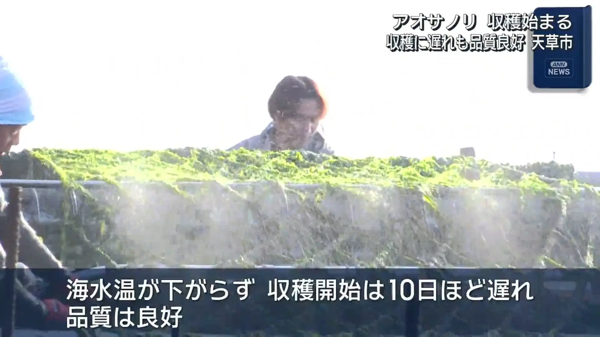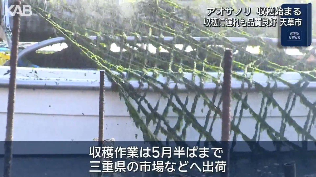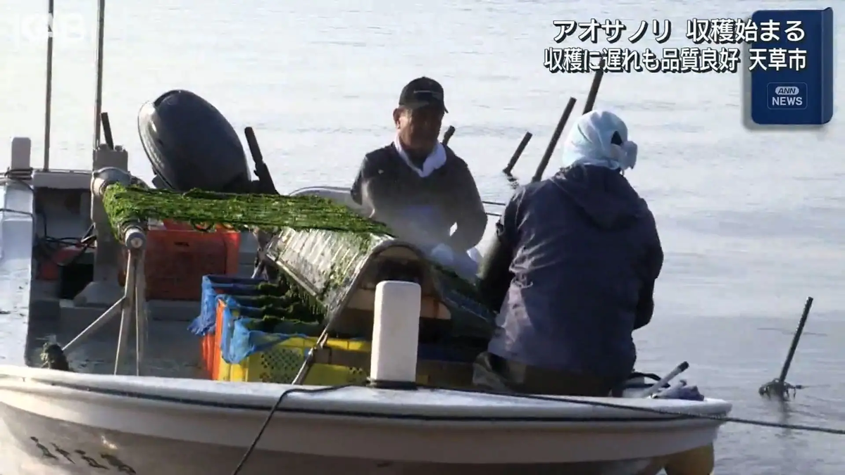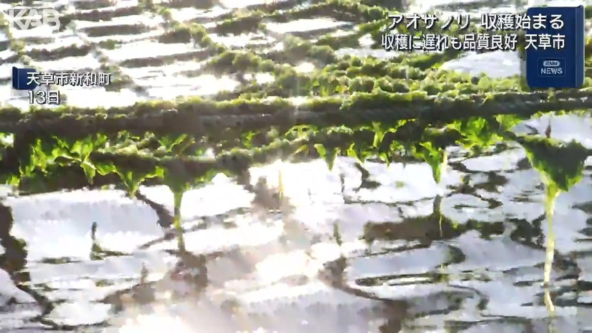 熊本県天草市で特産のアオサノリの収穫作業が始まっています。